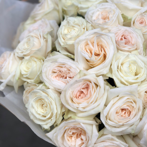 Sněhově bílé okvětní lístky a růžovějící se střed květů. To jsou nádherné pivoňkové růže White my O´Hara, které se dokonale hodí jako květinové aranžmá, nebo jako dárek k jakékoliv radostné události.