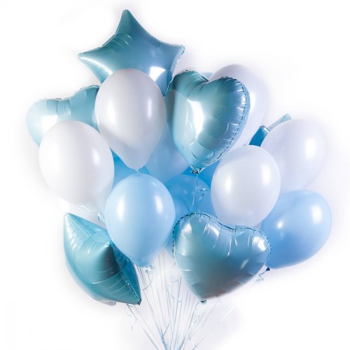 Krásná kytice spolu se sadou modro-bílých latexových a fóliových balónků ve tvaru srdíček a hvězd bude bezesporu příjemným překvapením. Vyberte velikost sady balónků a přidejte do nákupního košíku pouhým kliknutím myši.