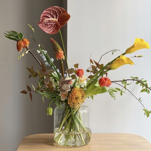 This bouquet is made from the most durable seasonal flowers. If you wish, you can also add a vase to your order.
