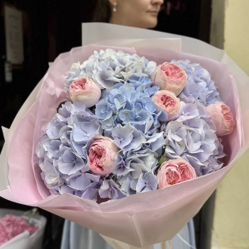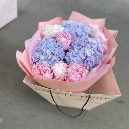 Darujte krásu dvou nejúžasnějších květin v naší vazbě hortenzií a pivoněk.