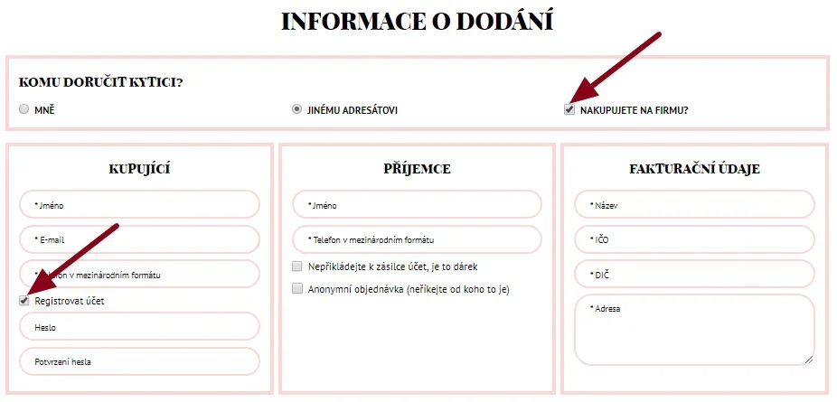 Dalším krokem je vyplnit osobní údaje a údaje o příjemci, jakož i fakturační údaje, pokud nakupujete na firmu.