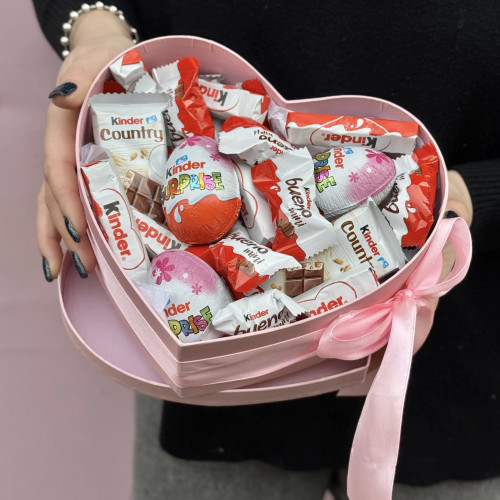 Dárkový box ve tvaru srdce s bonbony Kinder