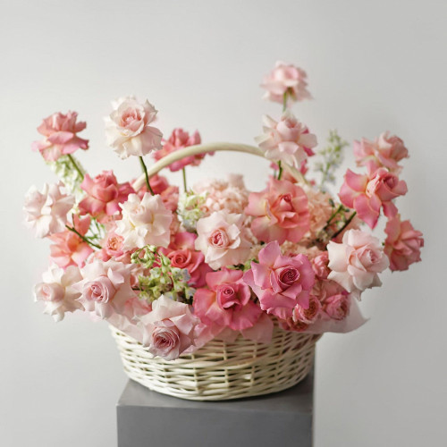 Květy jsou umístěny v dekorativním proutěném koši, který není nutné po uvadnutí vyhazovat. Naopak ho lze využít pro další dekorační účely.
