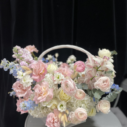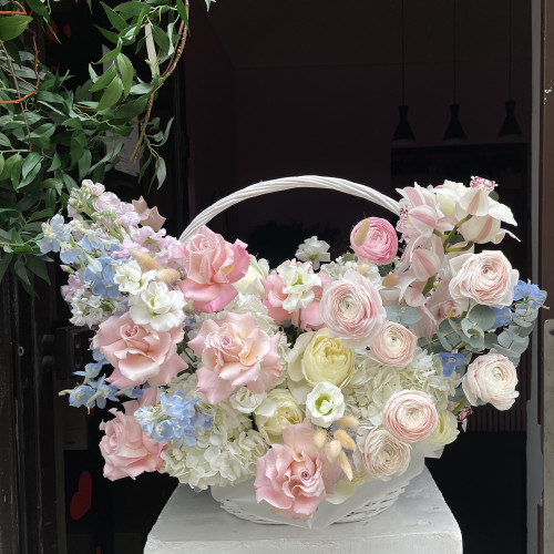 Květy jsou umístěny v dekorativním proutěném koši, který není nutné po uvadnutí vyhazovat. Naopak ho lze využít pro další dekorační účely.