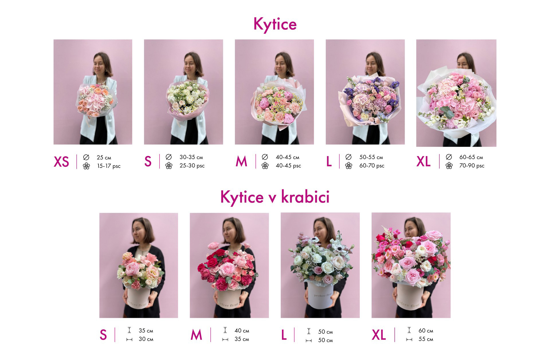 Velikost: Kytice je dostupná ve 4 velikostech S-XL. Na obrázku je zobrazena kytice ve velikosti S.