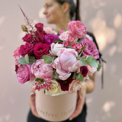 Vazba je umístěna v elegantní dárkové krabici ladící s celou kyticí. Květy není nutné z krabice odstraňovat a shánět jim vhodnou vázu. V dárkové krabici je vlhká aranžovací hmota, která květinám poskytuje potřebnou vláhu a péči.