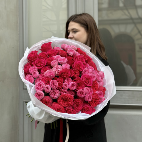 Překvapte svoji přítelkyni nebo manželku luxusní kyticí růžových a bílých růží. Pugetem lze poděkovat, vyjádřit hlubokou úctu nebo vyznat lásku. Součástí vazby je ozdobný kraftový papír, který ladí s celou kyticí a není tedy nutné ho odstraňovat.