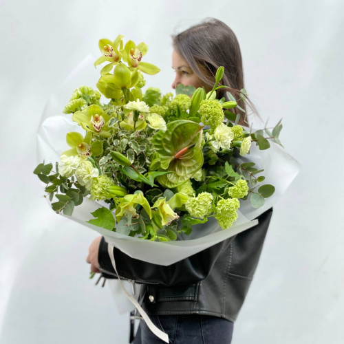 Nechte se učarovat stupňovitými odstíny zelené barvy této nádherné kytice a potěšte jak ženy, tak i muže.