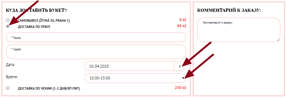Заполните способ доставки товара, укажите адрес и удобное время. При необходимости оставьте комментарий к заказу.