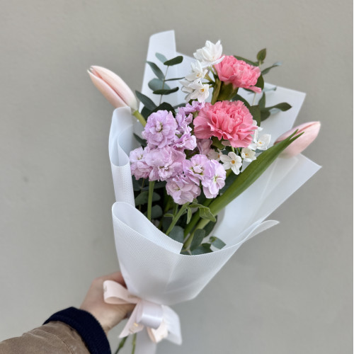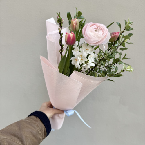 Мы составляем композиции только из свежих весенних цветов, подбирая гармоничные оттенки и лёгкое, праздничное оформление. Каждый букет создаётся вручную в день заказа, чтобы сохранить максимальную свежесть и аккуратный внешний вид.