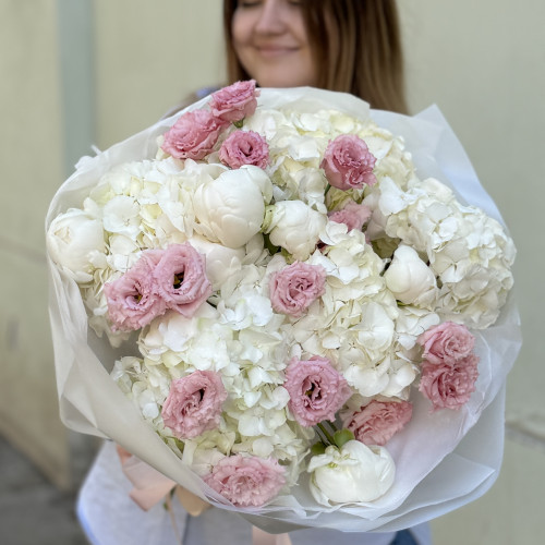 Trio kytice "Hortnezie, pivoňky a eustoma" | ![]() |
